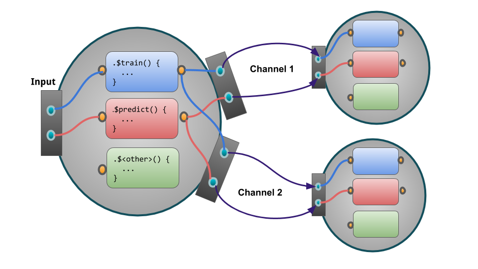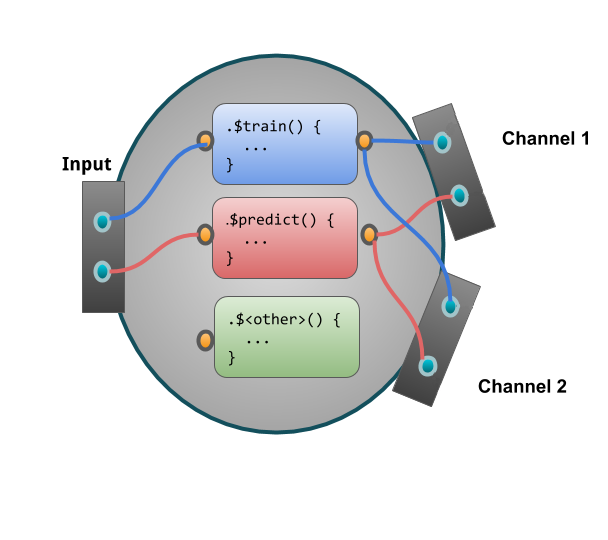 * $train(), taking a list of input arguments, turning them into a list of outputs, meanwhile saving a state in $state